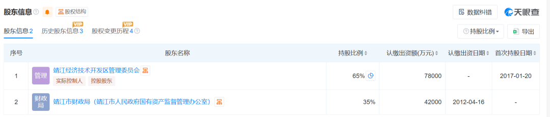 《每日经济新闻》记者注意到,靖港集团为靖江经济技术开发区管理委员会和靖江市人民政府国有资产监督管理办公室下属企业。